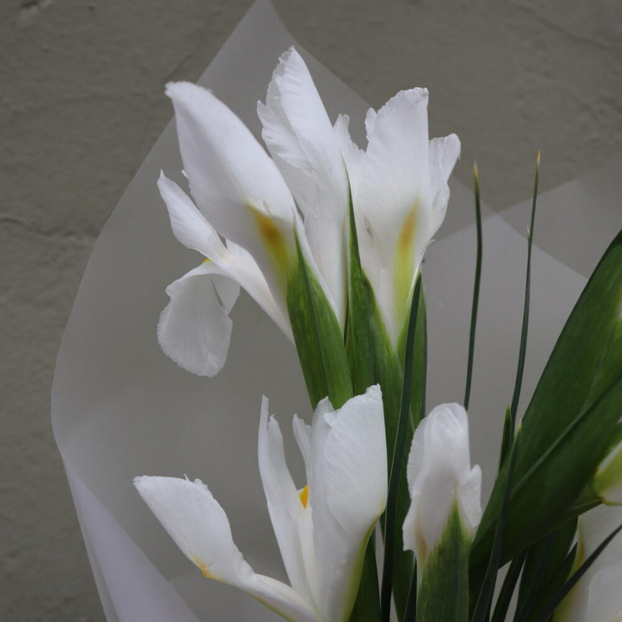 Букет 15 белых ирисов в стильной упаковке фото 4