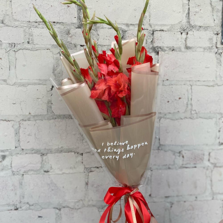 Букет из 5 красных гладиолусов в Гусь-Хрустальном