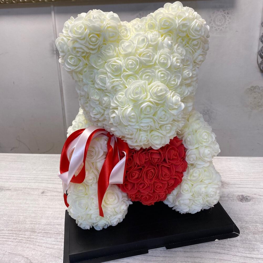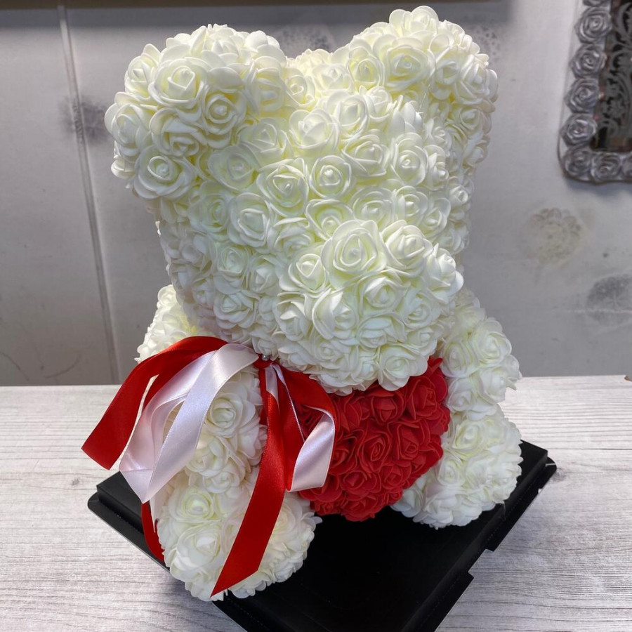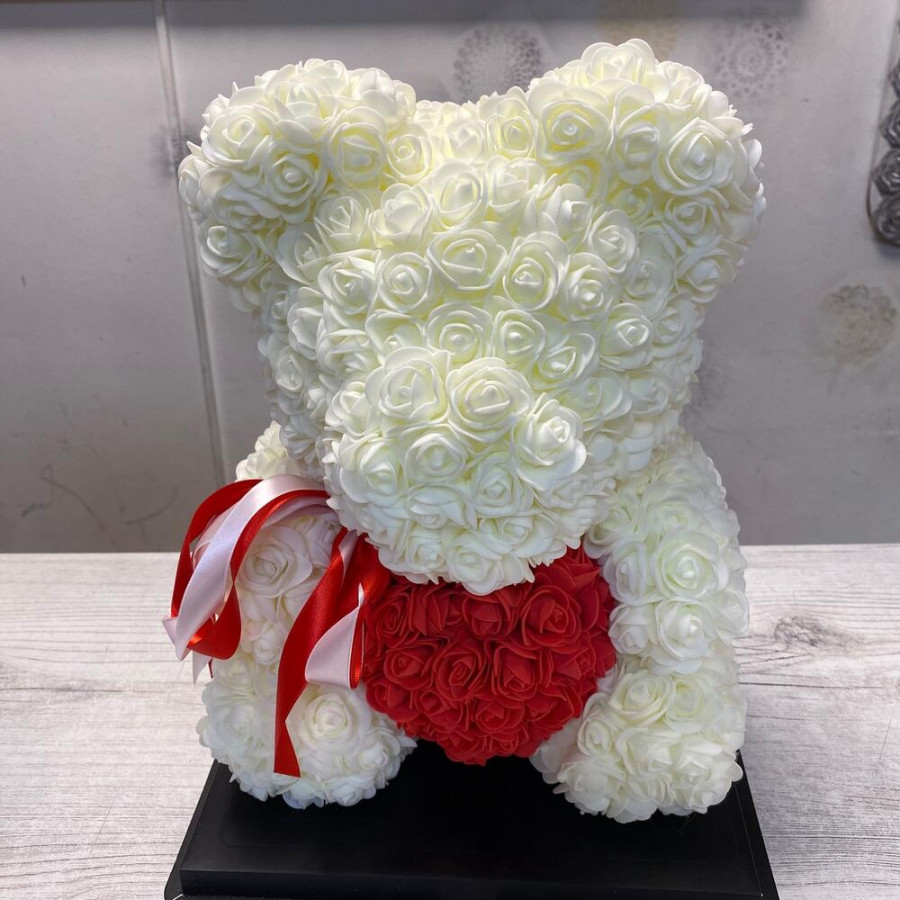 Большой мишка из белых роз 40 см в Гусь-Хрустальном
