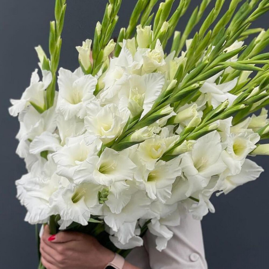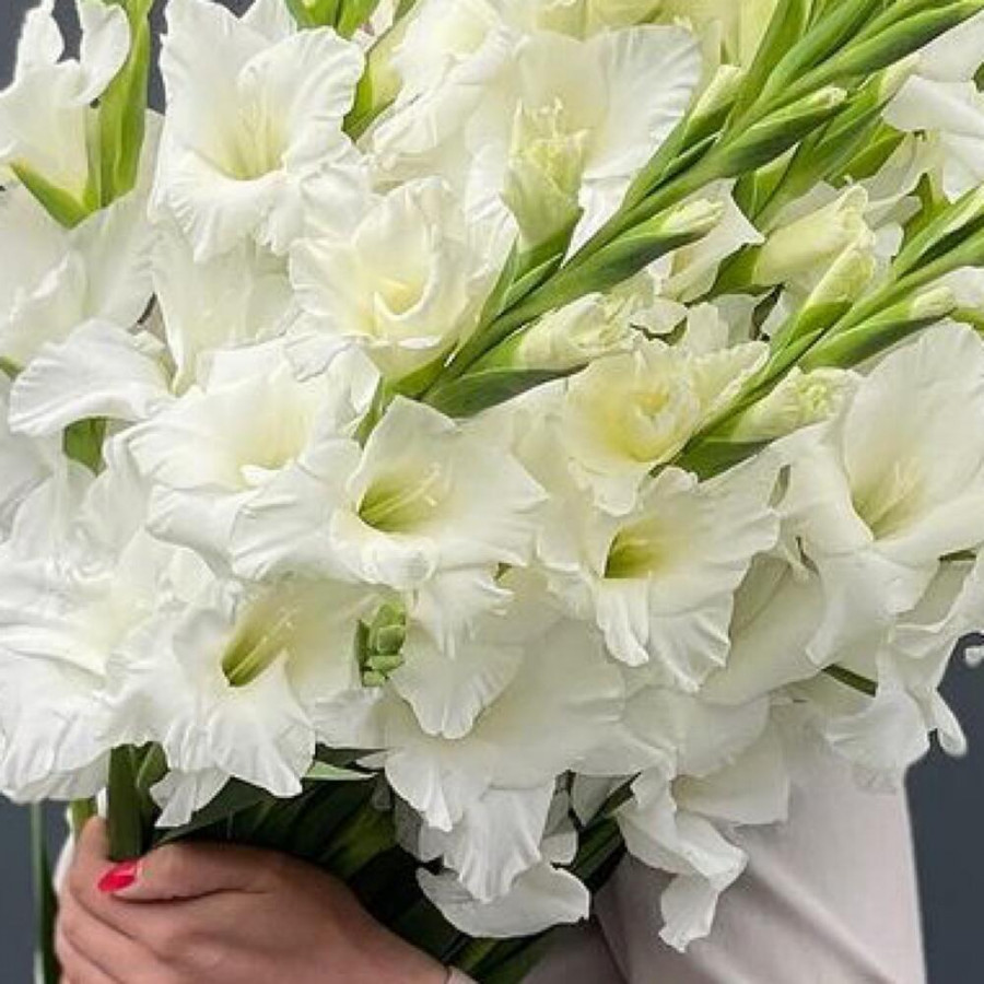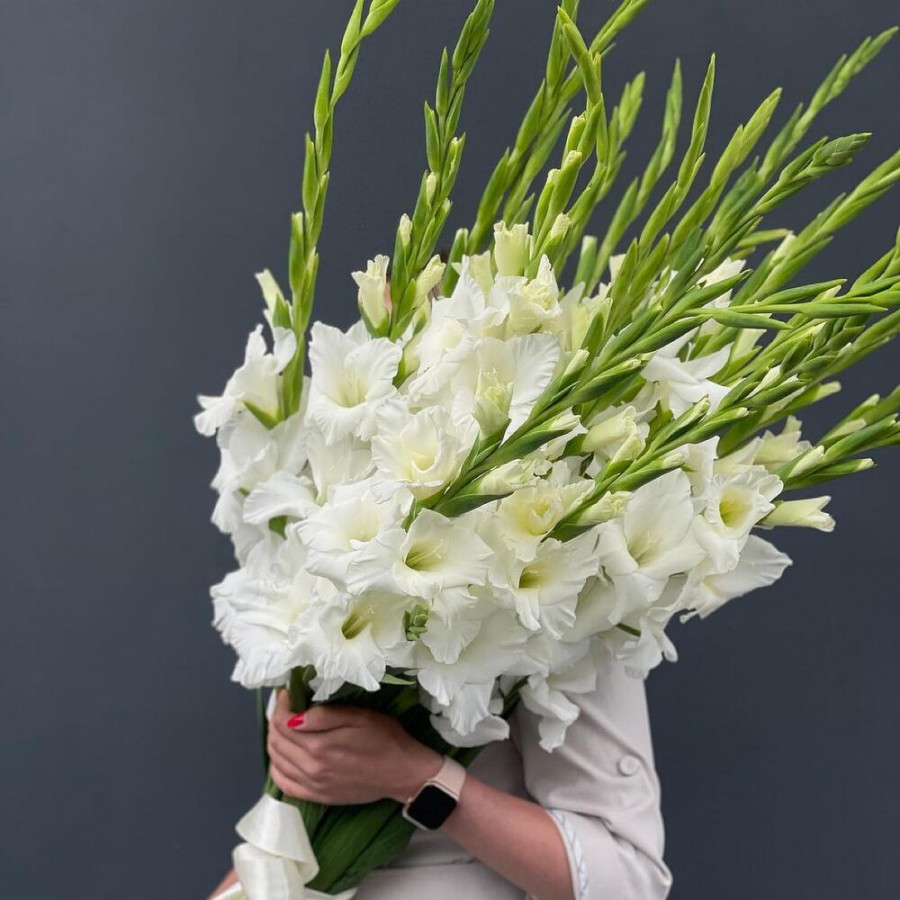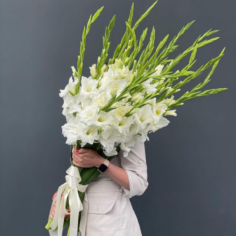Букет из 19 белых гладиолусов под ленту в Гусь-Хрустальном