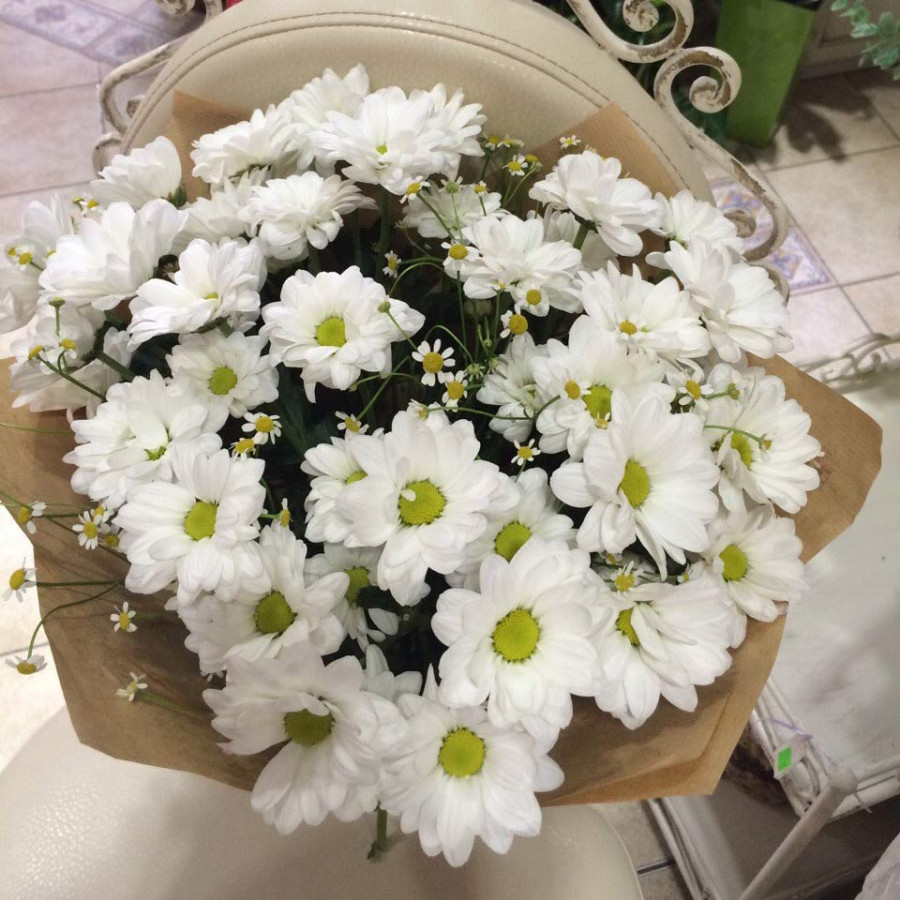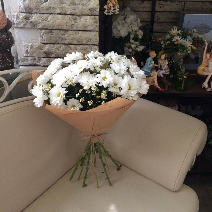Если хотите напомнить своей любимой о лете в зимнюю пургу или в осенний дождь - этот букет идеальный подарок, чтобы привнести в ее жизнь теплое лето и красоту ромашковых полей. 7 веток белой ромашковой хризантемы баккарди, 4 веточки танацетума в стильной упаковке из крафта долго будут радовать получательницу своим летним настроением.