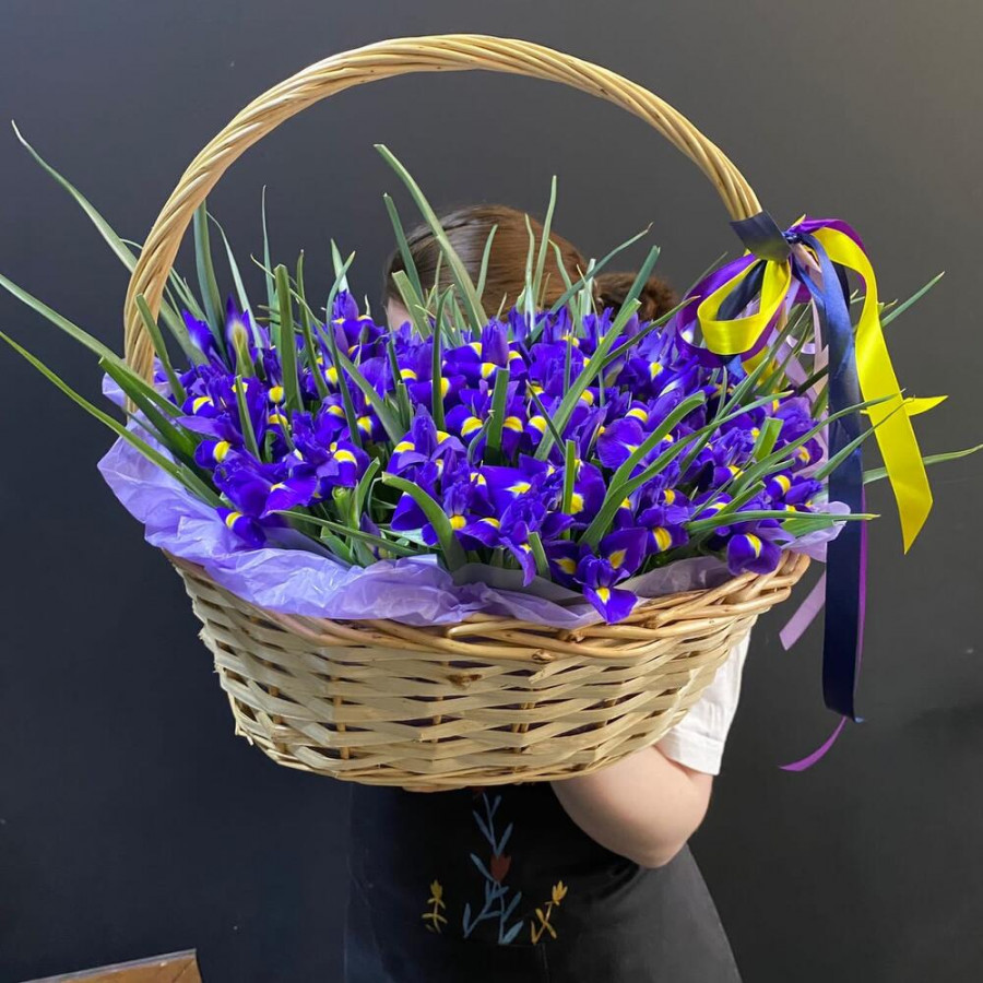 Корзина из 101 синего ириса в Гусь-Хрустальном